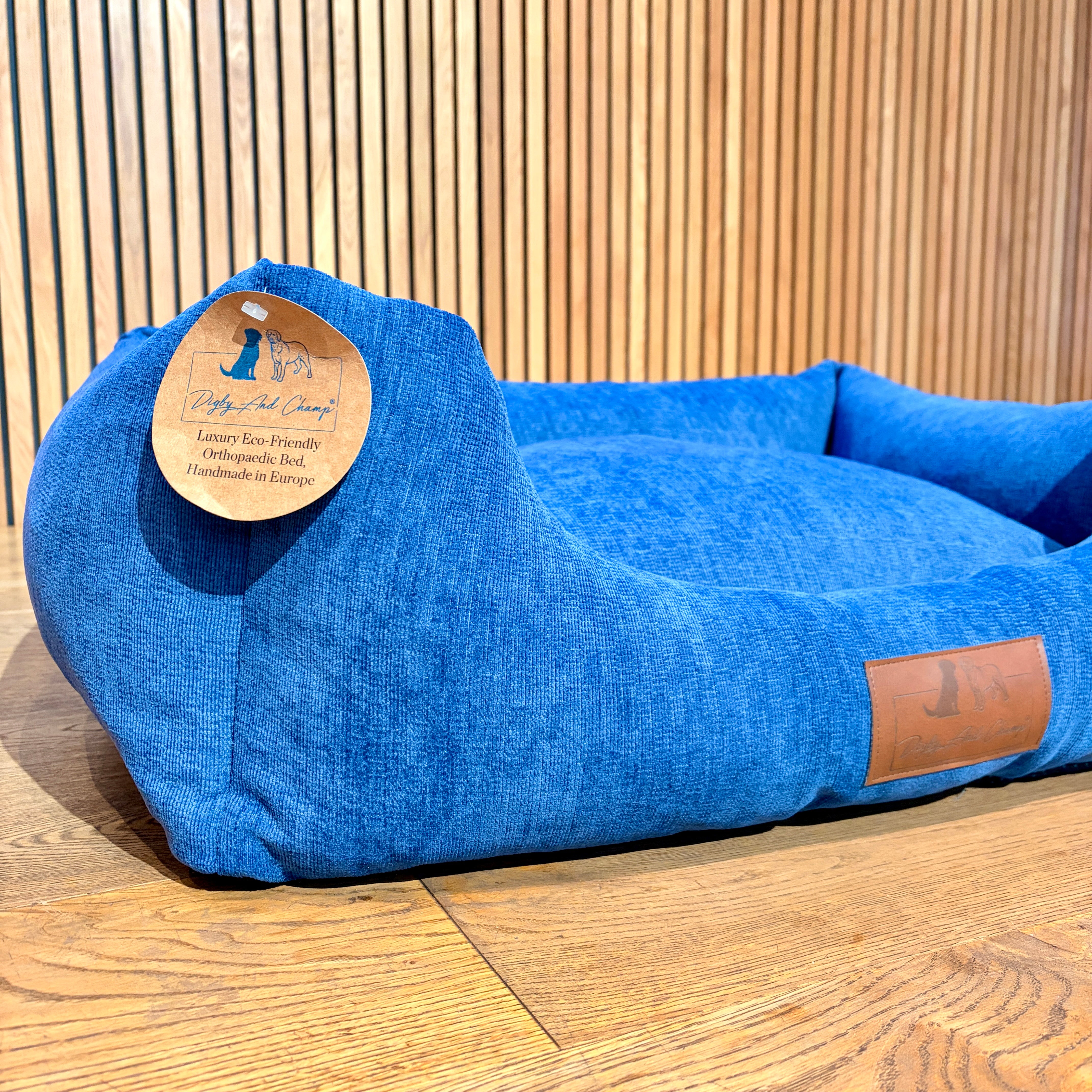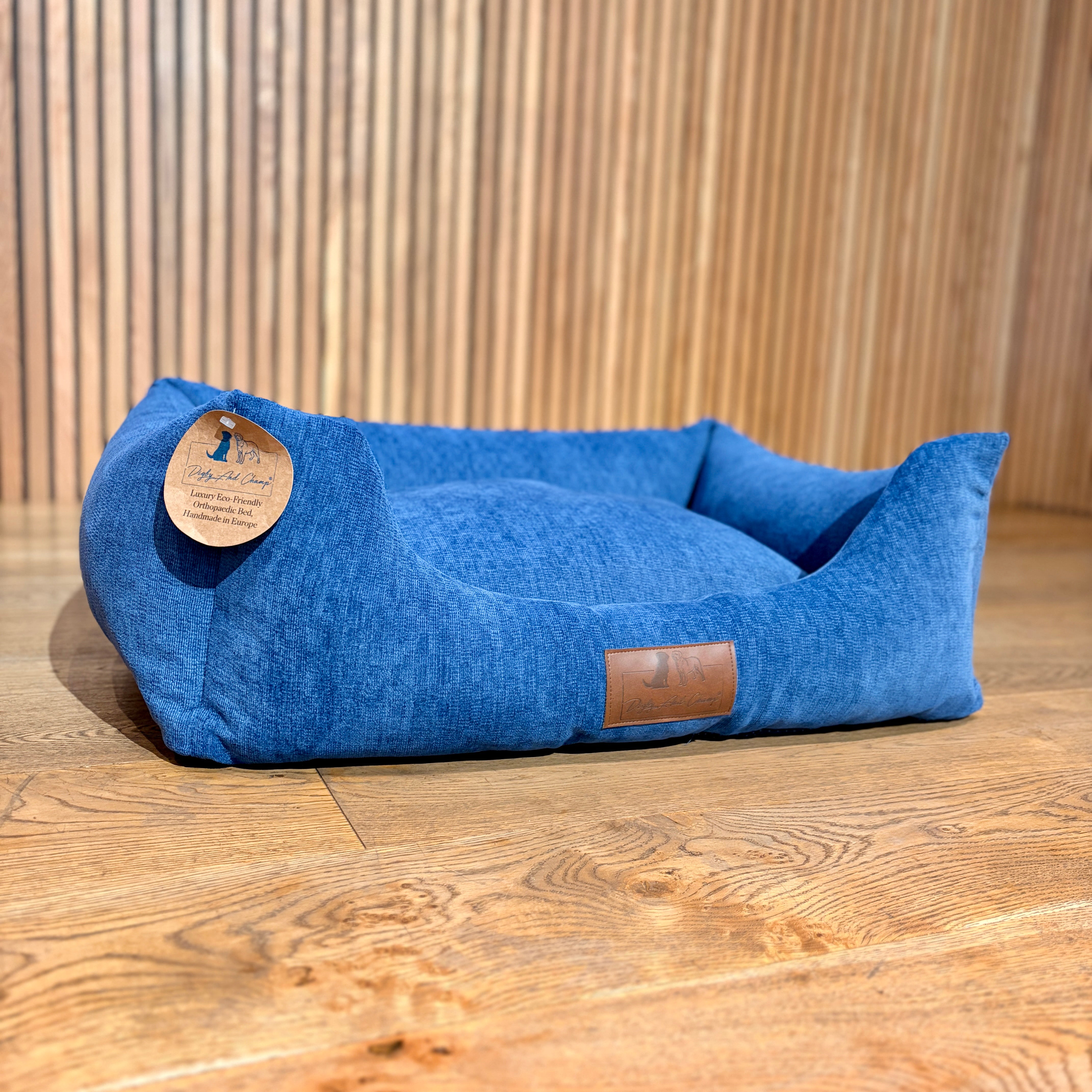 Experience luxury for your dog with their very own Digby and Champ orthopaedic dog bed in the beautiful royal blue fabric. Handmade in Europe, using eco-friendly materials designed with exceptional comfort and support in mind.
