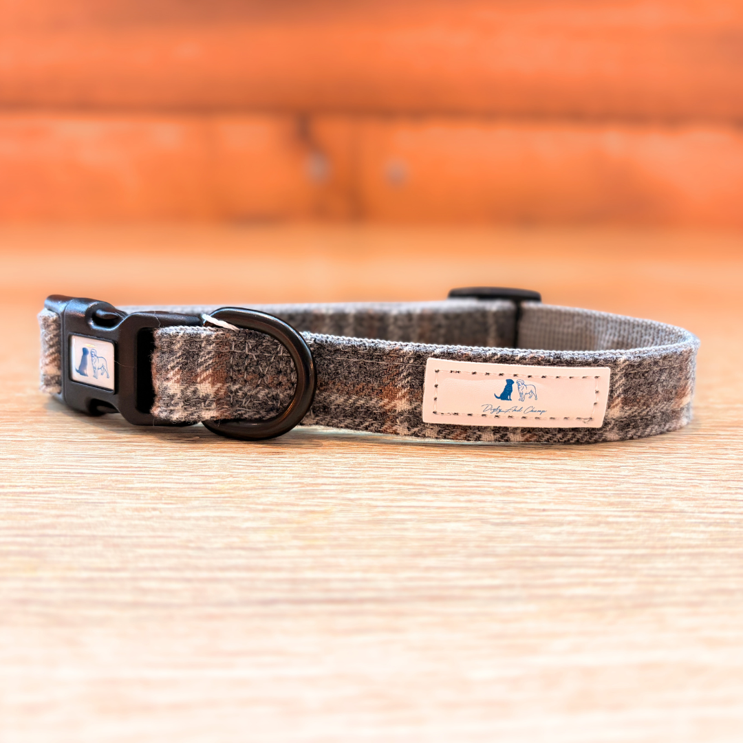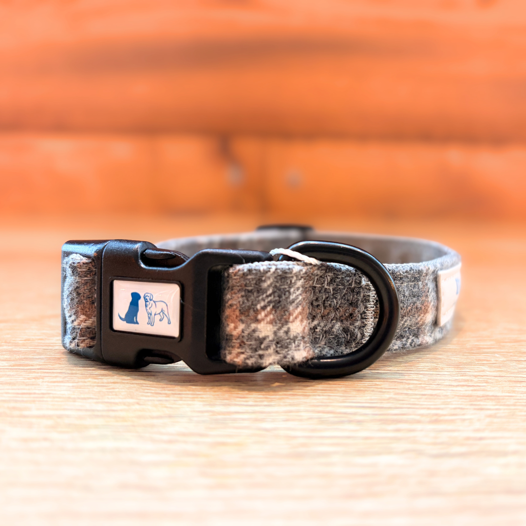 Digby and Champ dog collars are designed with practicality and style in mind and perfect for your dogs everyday adventures. The beautiful Grey Tartan soft, tweed fabric will provide your dog with supreme comfort.